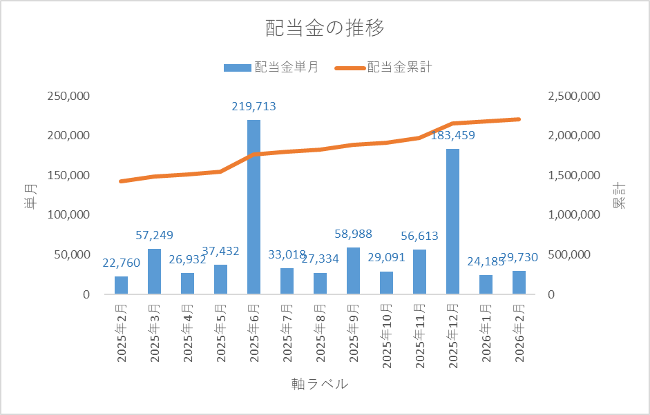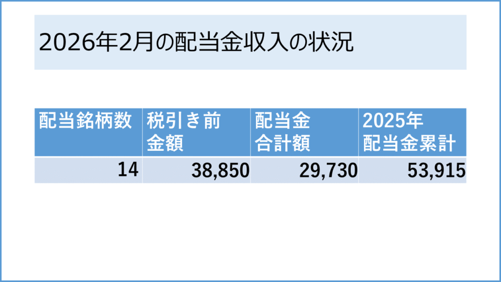 今回は2026年2月末時点の配当金状況をご報告したいと思います。